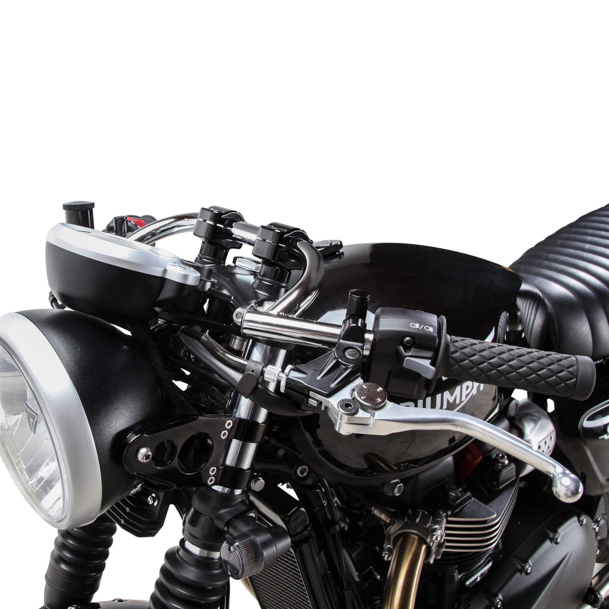 Shop the Cafe Handlebars for just $135 and transform your motorcycle’s riding experience with precision-engineered performance. Designed for universal fitment, these lossa engineered handlebars are available in 7/8-inch or 1-inch options with stylish black or chrome finishes. Crafted from seamless .083-inch Chromoly tubing and TIG welded, they not only enhance your motorcycle's appearance but also improve control and handling. Whether you ride a Triumph or any cafe racer-style bike, these triumph cafe racer handlebars are custom-designed for functionality and sleek aesthetics.