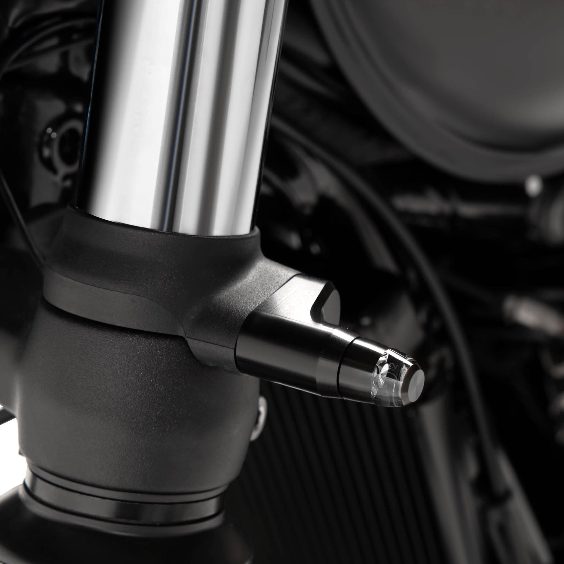Shed the ordinary look with the CNC-machined Pan Tail Light and Motogadget mo.Blaze Pin Turn Signals. The Pan Tail Light complements your Triumph’s classic design, while the ultra-compact mo.Blaze Pin Turn Signals, bright yet discreet, enhance visibility without dominating your bike's profile.