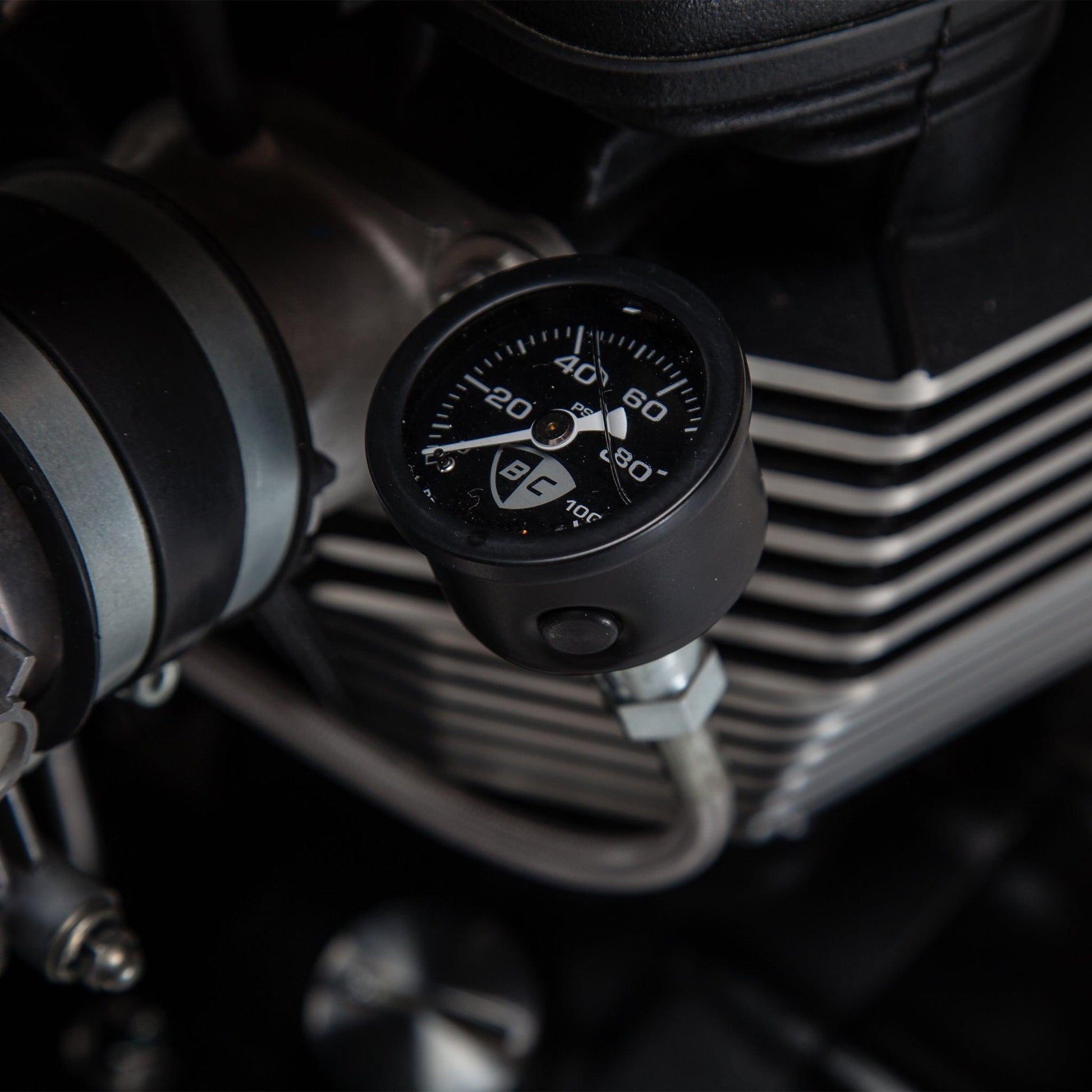 The best solution to maintain your motor is by being able to monitor its internal conditions. The British Customs high quality oil pressure gauge installs in minutes to enable you to keep tabs on oil pressure, accurately and in real time. Low oil pressure for just a few seconds can go unnoticed by an Idiot light and cause major damage.