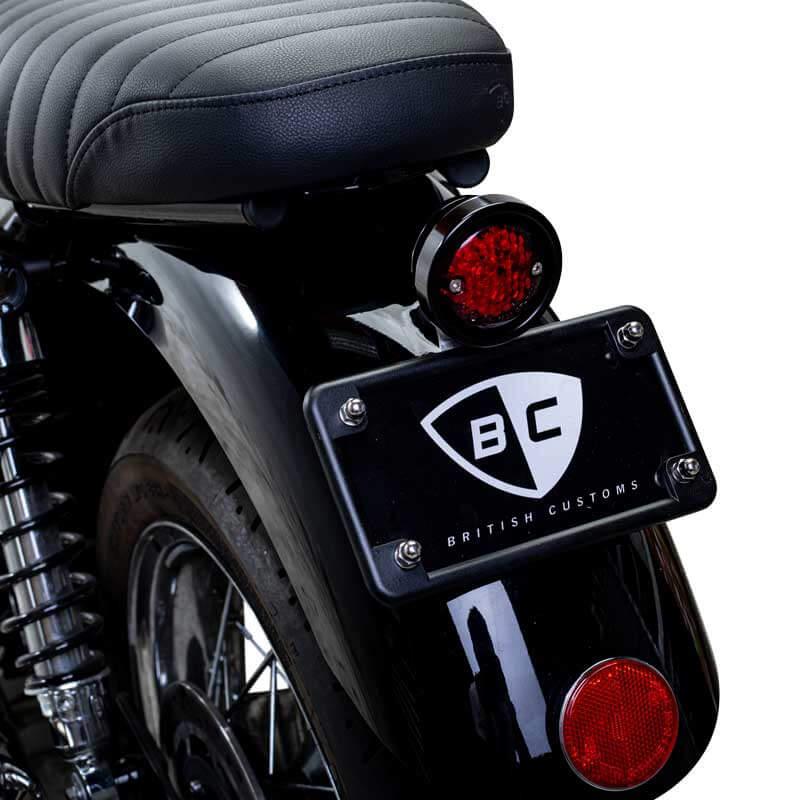 Crafted from CNC machined 6061 aluminum, with a black anodized finish and powder coating, the Plug and Play Pan Tail Light is built to last. Its robust, weather-resistant construction complements the classic lines of your Triumph while giving it a modern edge without sacrificing the bike’s vintage appeal. The tail light also includes a built-in LED license plate light for added functionality and a sleek look.