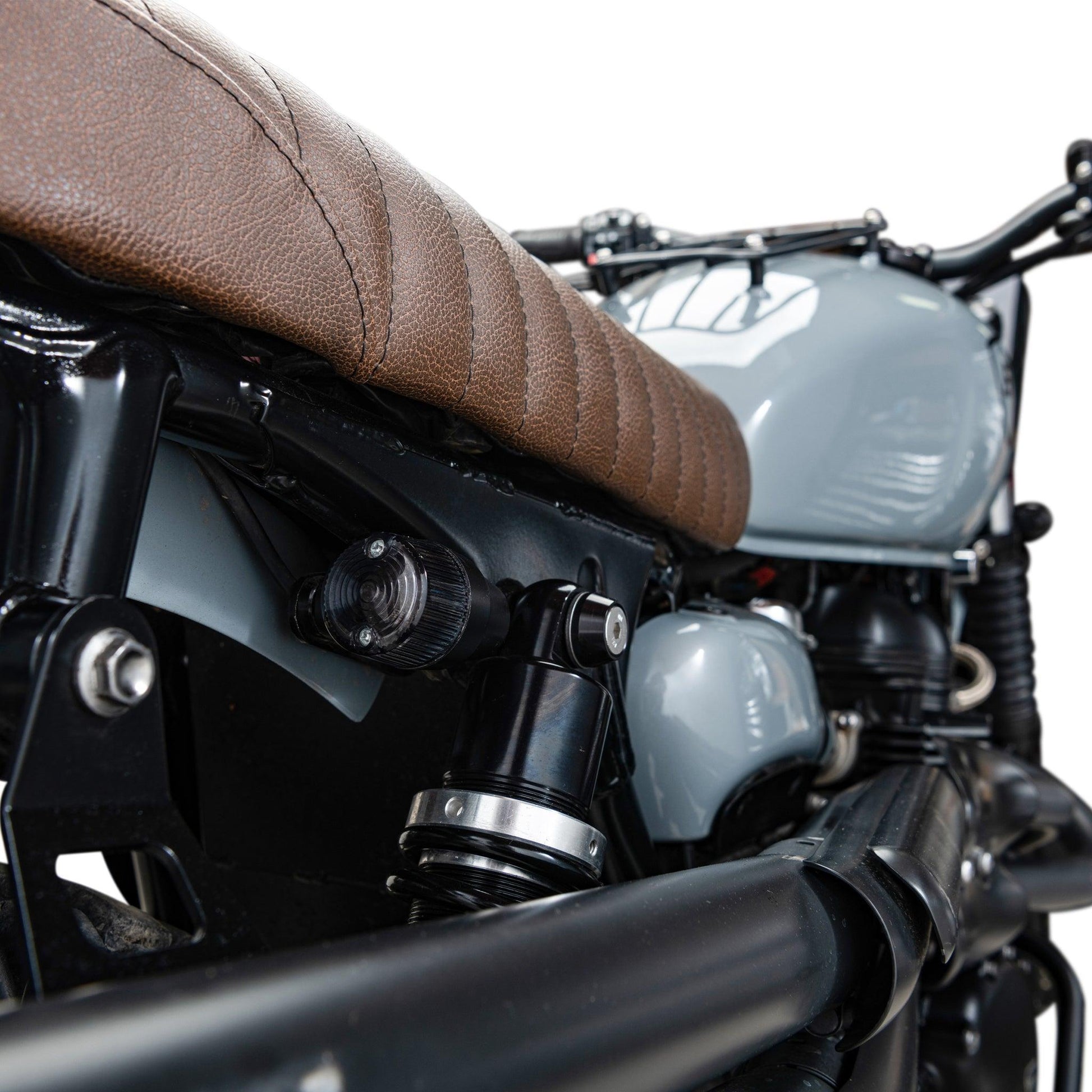 Upgrade your Triumph Modern Classic with the British Customs Retro LED Turn Signals—a sleek, high-performance lighting solution that blends vintage style with cutting-edge LED technology. Machined from durable aluminum and mounted to your bike’s rear shocks, these signals ditch bulky factory units for a clean, minimalist look. With 16 ultra-bright amber LEDs per indicator and a plug-and-play harness pre-assembled in the USA, installation is effortless—no splicing, no guesswork. Perfect for Bobber, Bonneville, Scrambler, and Speed Twin riders who demand visibility, reliability, and retro-modern flair.