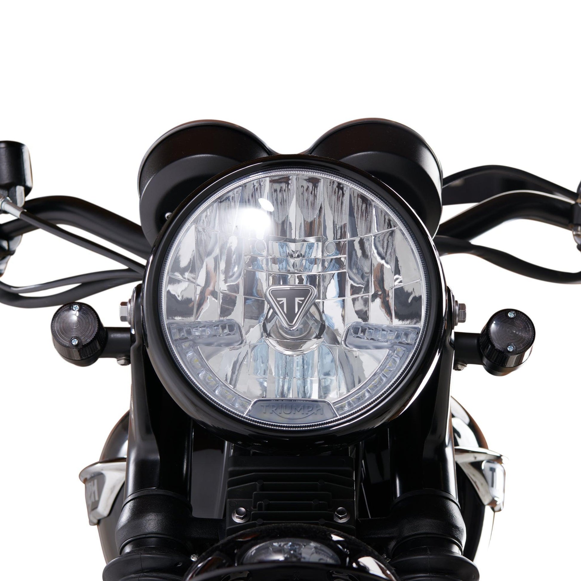 The retro style turn signals from K&S Technologies were selected for their build quality and superior aesthetics over factory indicators. These are one of the most popular lighting upgrades for Triumph Modern Classics. Offered in Halogen or LED.