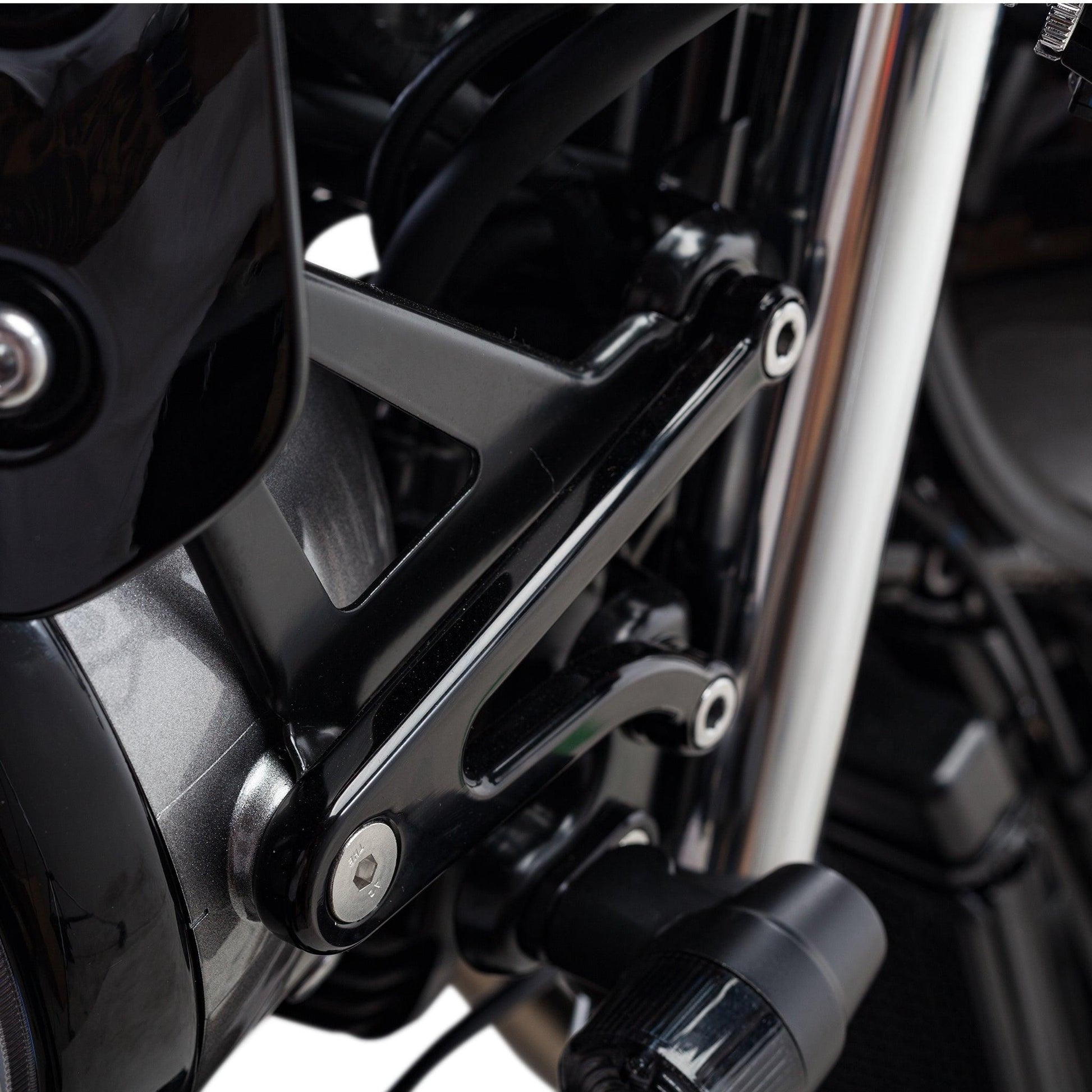 The British Customs Customs Headlight Ears enable you to swamp out the factory headlight ears for a billet aluminum option that adds to the classic style of your bike.
