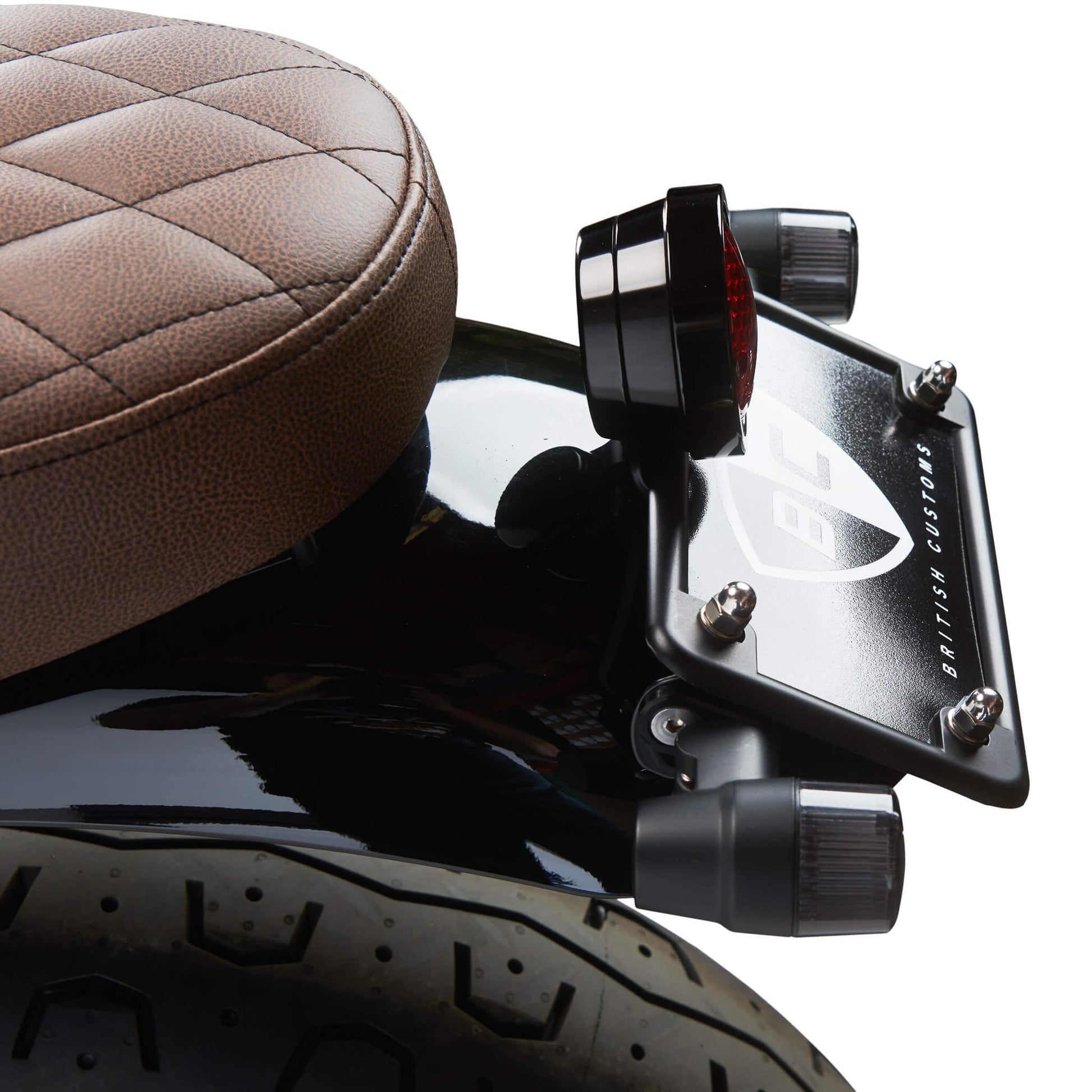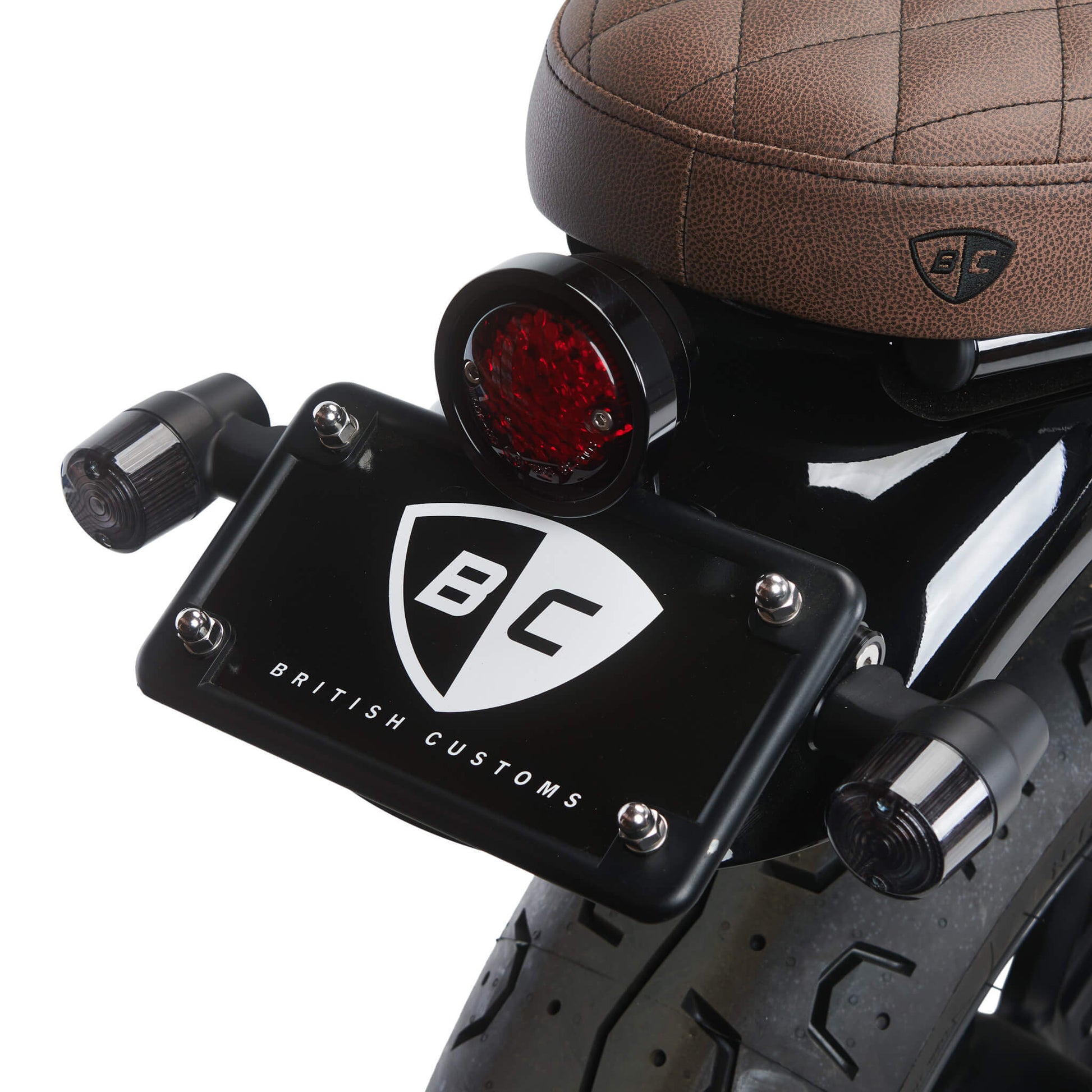 Upgrade your motorcycle's style and utility with rear license plate turn signal brackets from British Customs, priced at just $45.94. Designed to seamlessly enhance your ride, these brackets are crafted from premium Stainless Steel 304 and finished with a durable black powder coat. They offer unmatched strength and corrosion resistance, with a minimalist design that ensures a sleek aesthetic while maintaining the robustness to support turn signals and running lights.