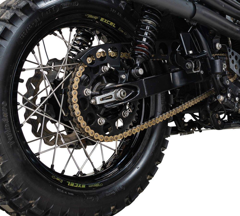 Equip your Triumph Bonneville, Scrambler 900, or Thruxton 900 with a motorcycle chain guard that delivers both style and functionality. This retro chain guard, priced at $103.95, is the perfect choice for riders seeking durability, protection, and a vintage aesthetic. Featuring a sleek, low-profile design, it complements the timeless appeal of Triumph motorcycles while ensuring reliable performance.