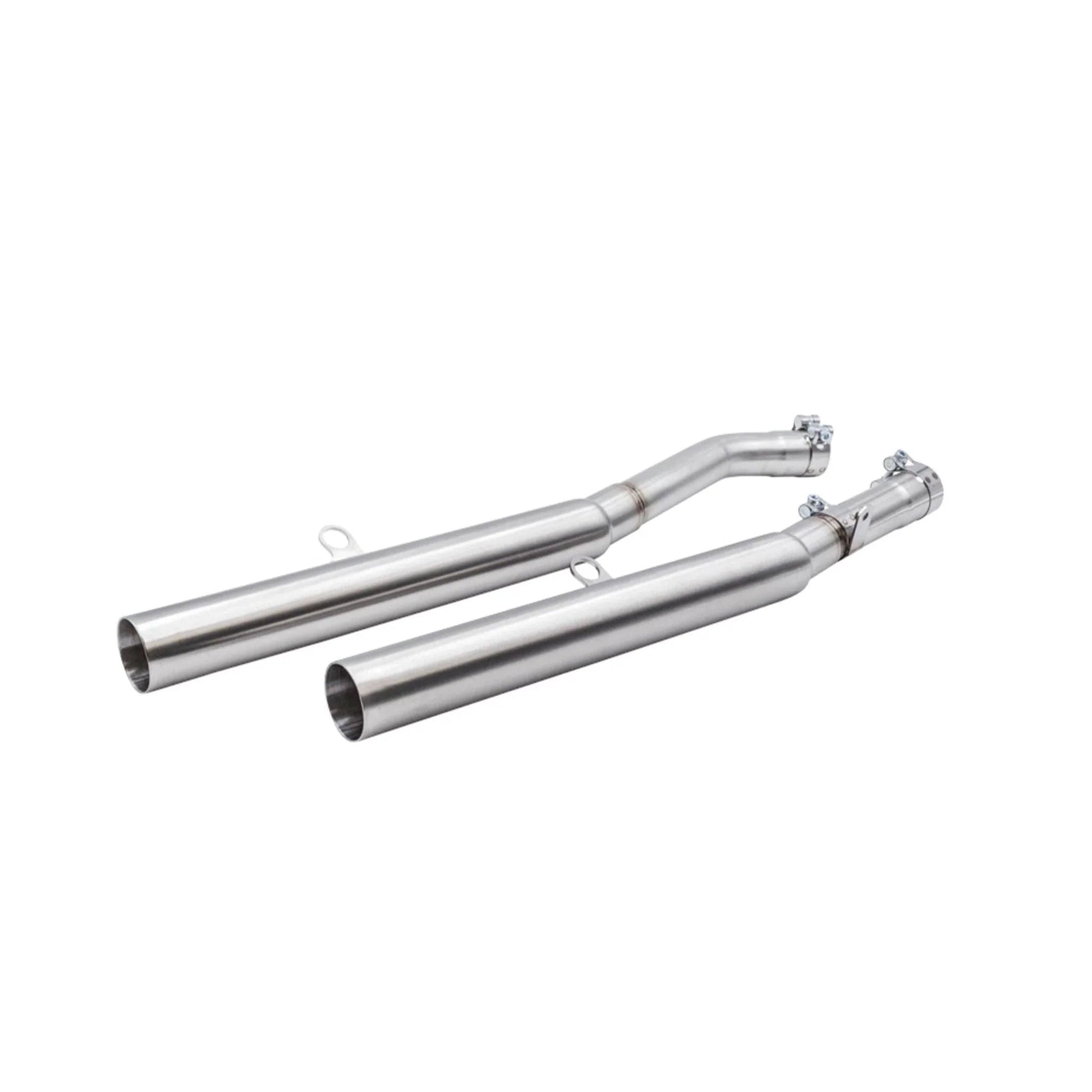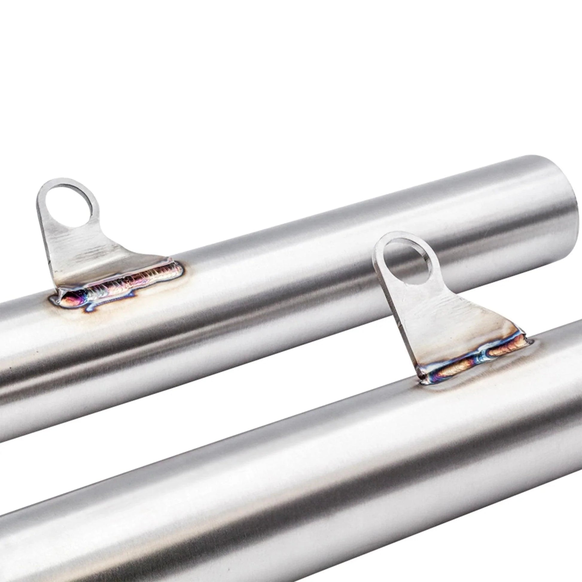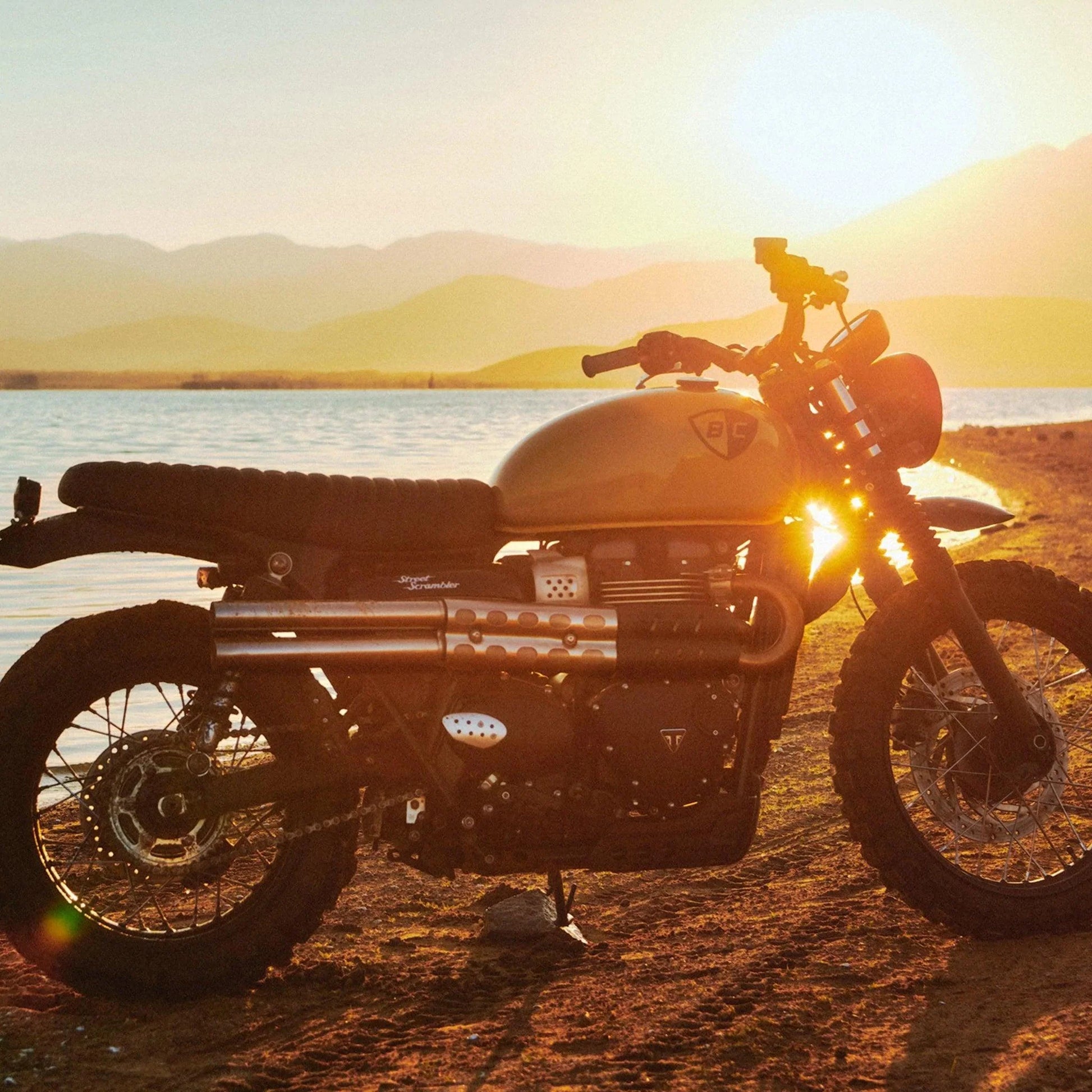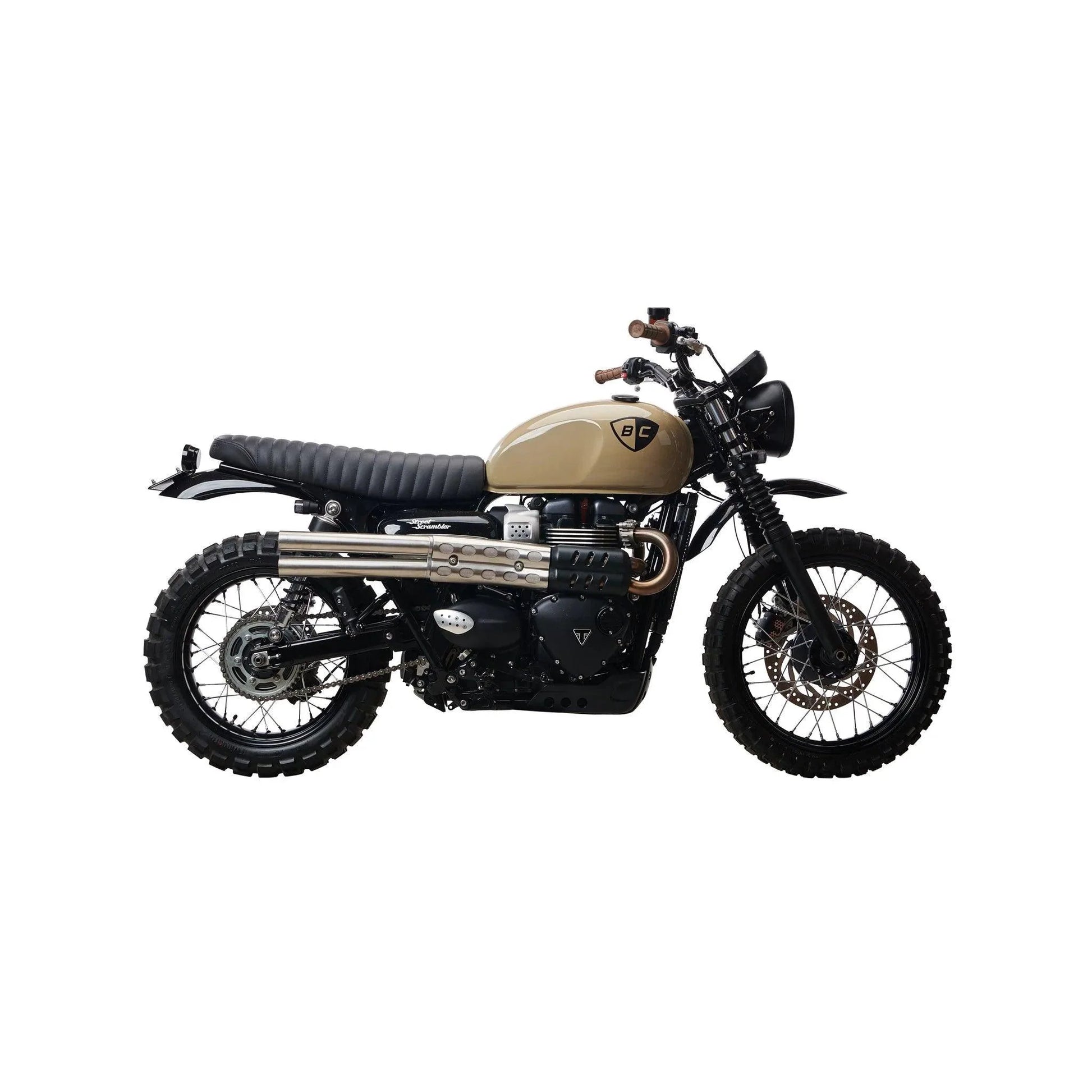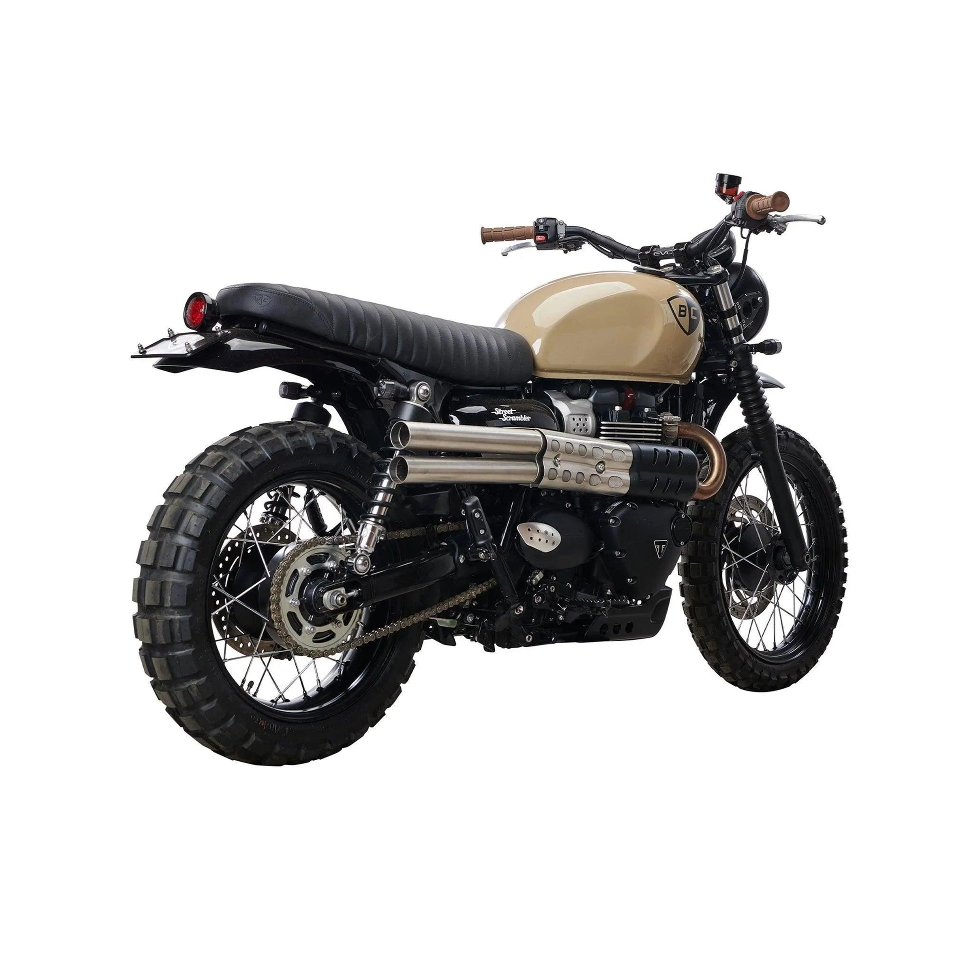 Unlike any other straight pipes on the market, this Triumph Scrambler exhaust offers boosted performance with a specially fitted louvered baffle wrapped in stainless steel wool to create the right amount of backpressure. Tried and true since 2012, this Scrambler exhaust pipe design has been tested by Ernie Virgil of Team Empire (see icon video) and most recently was tested on a Street Scrambler out in Ocotillo Wells, CA.