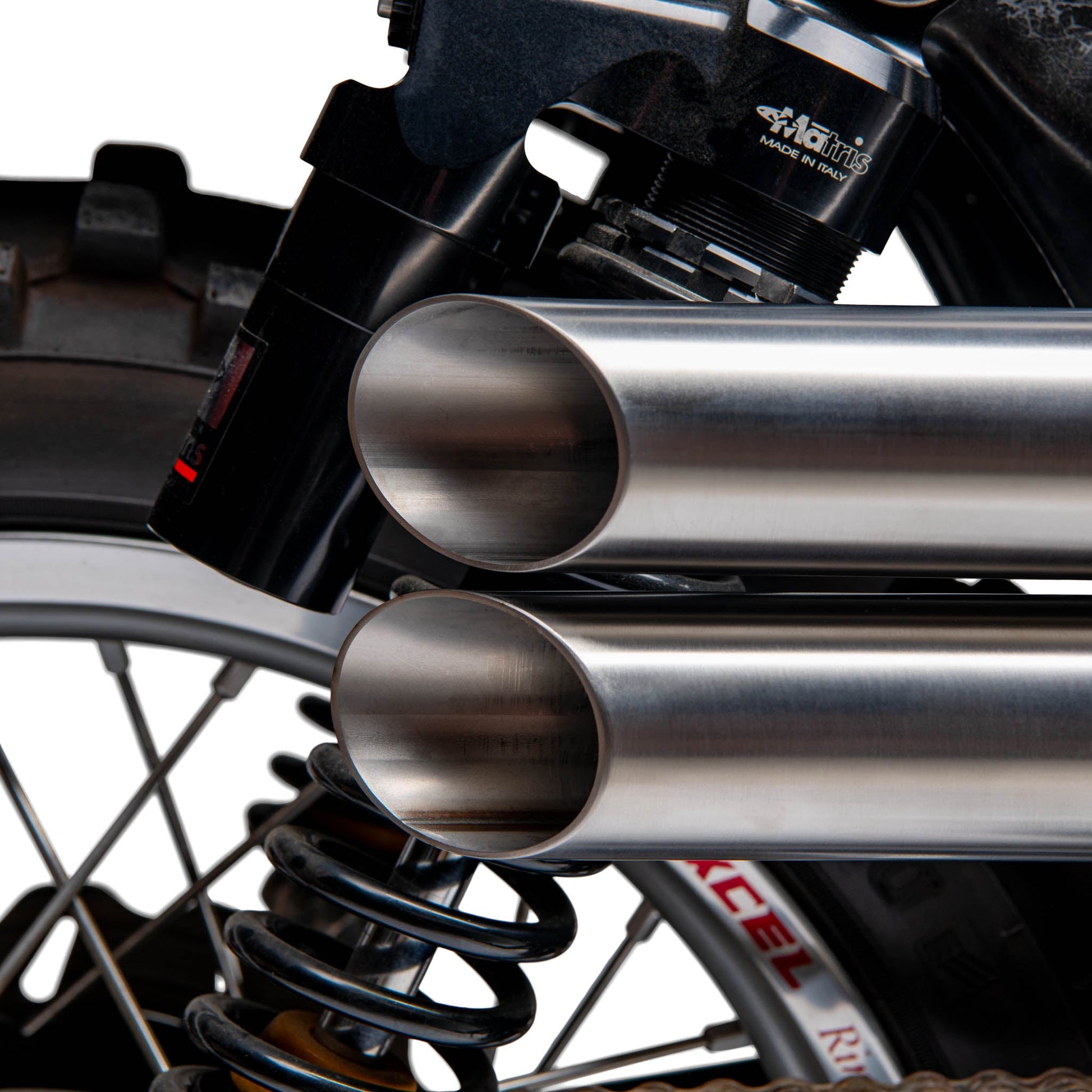 - Vintage-inspired straight pipe styling