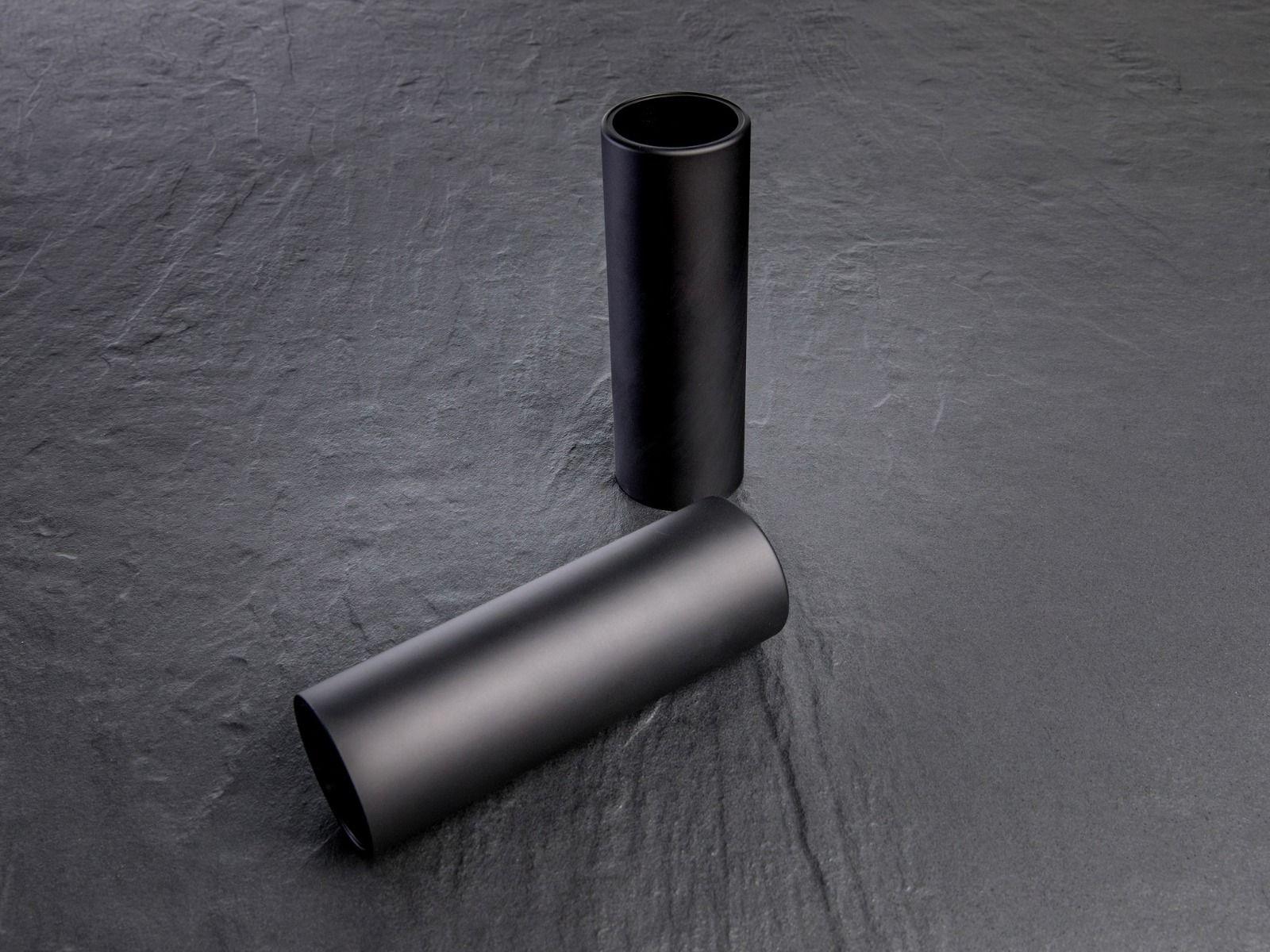 Cover for upper fork legs 47 mm, billet aluminum, Bobber Black. High-quality, well-designed aesthetic upgrade for your Triumph Bonneville Bobber from renowned German parts manufacturer Wunderkind Custom. Now available from British Customs.